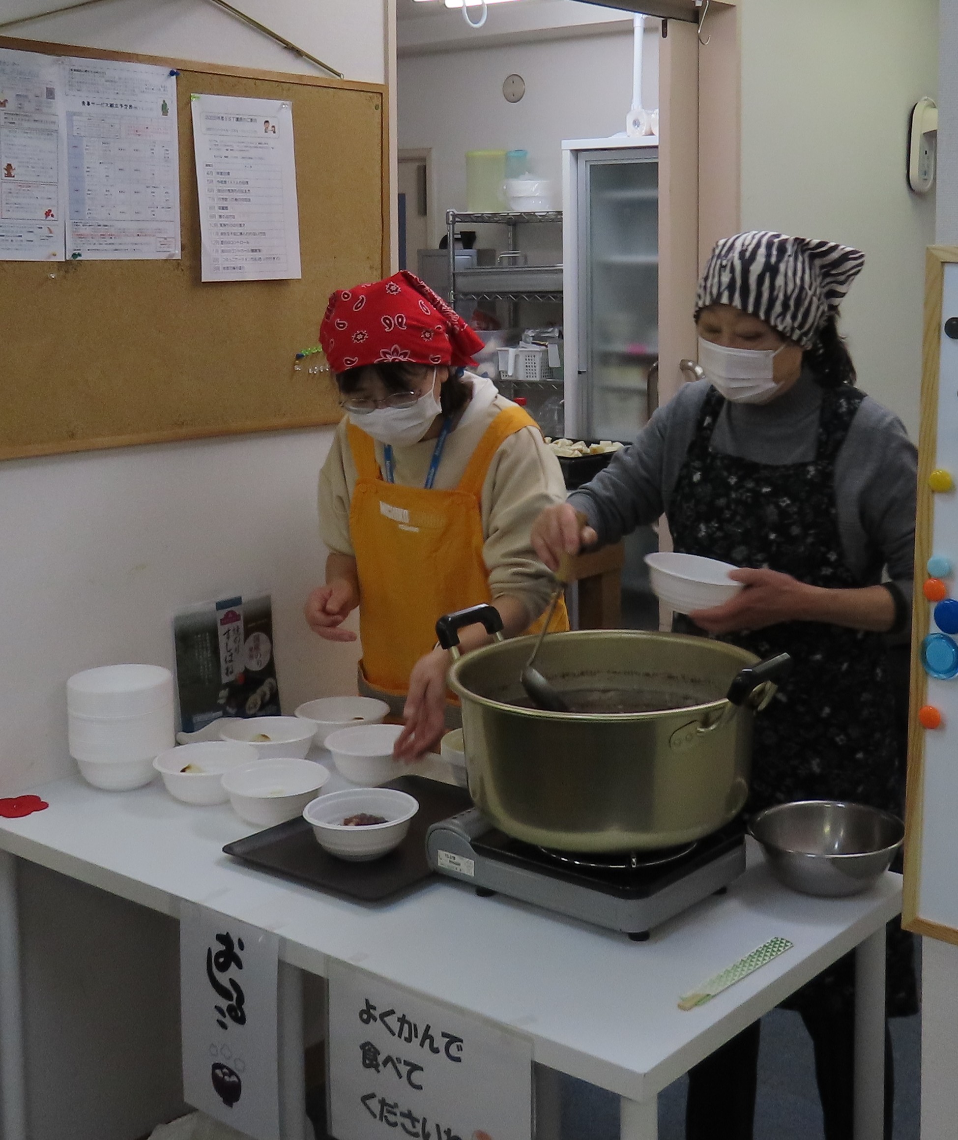 今年は、お雑煮が1杯、おしるこが2杯までとして、メンバーからのリクエストを受けて、焼き餅3種類「きな粉、磯辺、からみ(大根おろし)」を用意して食べ放題としました。前日の金曜日から受付開始しましたが、その日の夕方には、定員に達してしまいました。申し込みに間に合わず、食べられなかった方、申し訳ありません。