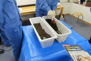 まず生ごみを肥料化する「土壌混合法」を教えてもらいました💡